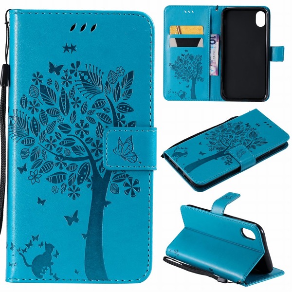 Puzdro pre iPhone SE 2020 - Mačka a strom, modré