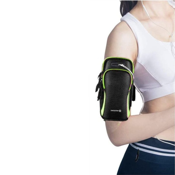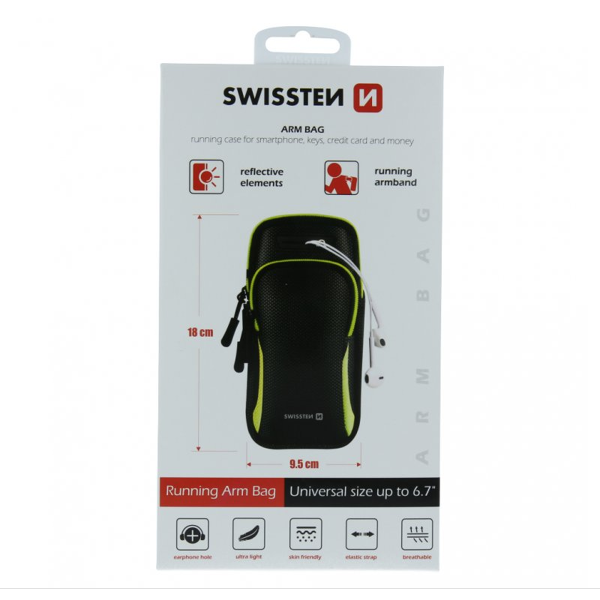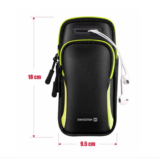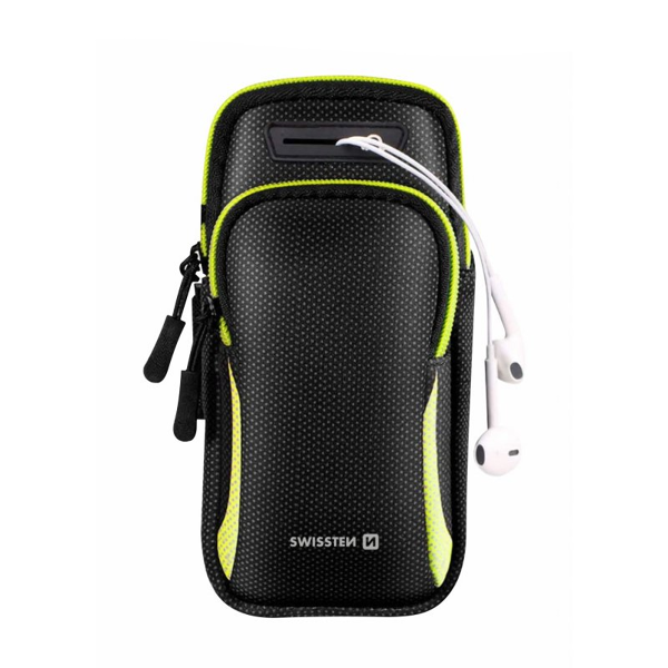 Táto čierna taška SWISSTEN ArmBag so žltozelenými reflexnými prvkami je vyrobená z vysokokvalitného neoprénu, vďaka čomu je vodotesná. Vo vnútri má tiež bezpečnú sieťku, ktorá umožňuje nepretržité vetranie a zároveň chráni váš smartfón. Navyše má výstup na slúchadlá, takže môžete nerušene počúvať svoju obľúbenú hudbu počas akejkoľvek aktivity.