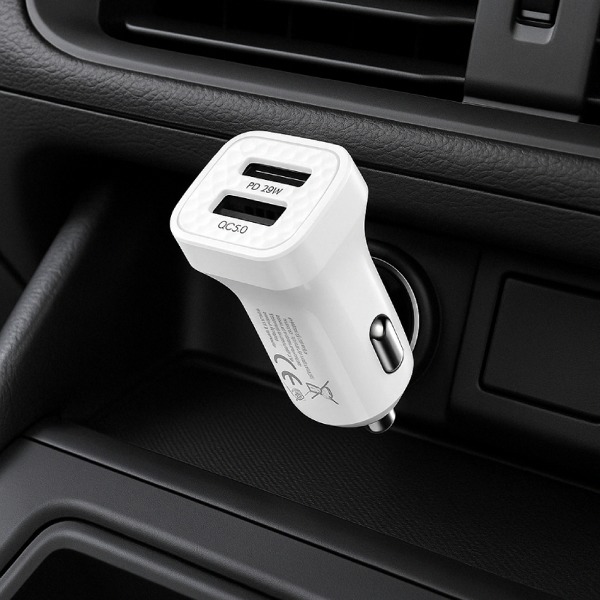 QC 3.0 USB a USB-C 20W rýchla nabíjačka do auta - biela