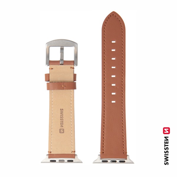 REMIENOK SWISSTEN pre APPLE WATCH LEATHER 42 / 44 / 45 / 49 mm BROWN (strieborná spona a strieborné pútko)