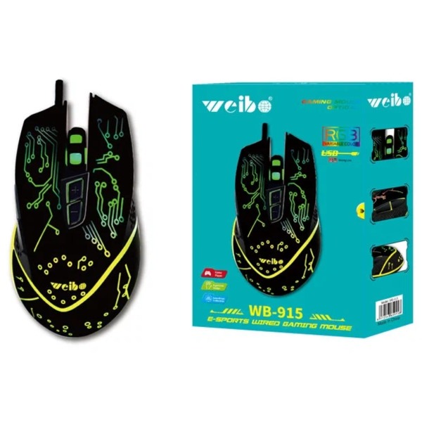 Herná myš Weibo RGB je šitá na mieru skutočným hráčom počítačových hier. S touto myšou získate dokonalú presnosť a svižnosť pri hraní hier. Kábel, ktorým je myš pripojená k počítaču, je potiahnutý a pogumovaný, takže dlho vydrží. Vďaka krásnemu RGB osvetleniu bude používanie Weibo RGB Gaming Mouse radosťou pri hraní hier alebo len pri práci na počítači. Vďaka ergonomickému dizajnu vás ruka nebude bolieť ani pri dlhodobom používaní.