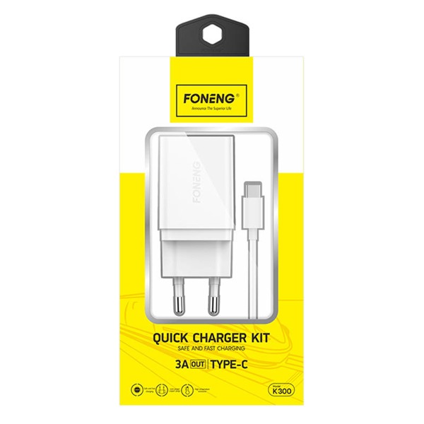 Rýchlonabíjačka Foneng 1x USB K300 + kábel USB na USB-C