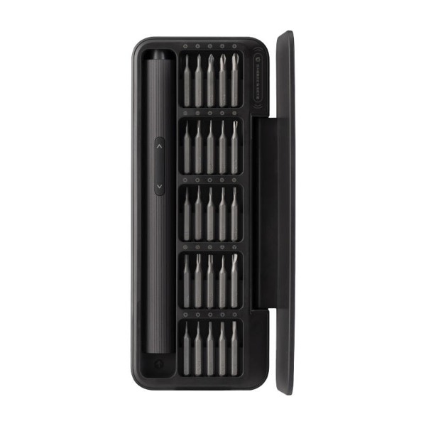 Súprava obsahuje 25 presných bitov vyrobených z kvalitnej ocele S2, čo zaručuje ich odolnosť a dlhú životnosť. Bity pokrývajú širokú škálu typov vrátane plochých, krížových, šesťhranných, torx a ďalších, čo umožňuje ich použitie pri opravách elektroniky, ako sú mobilné telefóny, notebooky a hodinky. Magnetický držiak bitov uľahčuje výmenu bitov a zaisťuje pevné držanie pri práci.