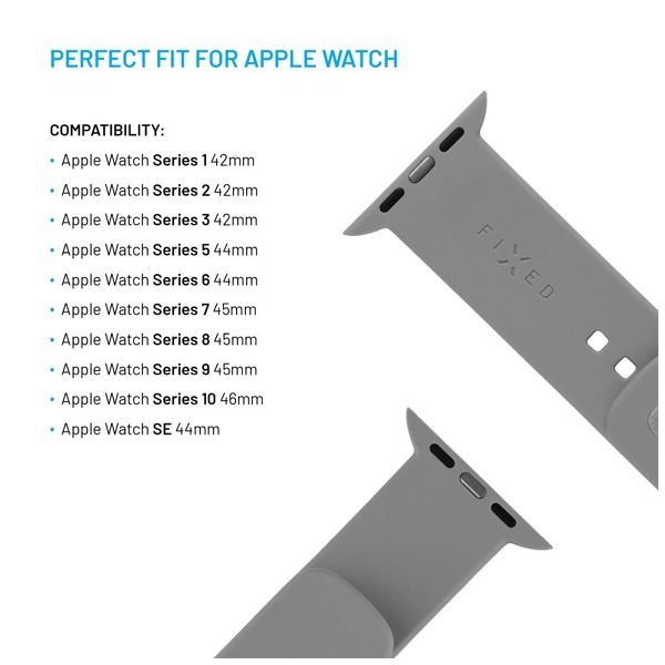 Sada silikónových športových remienkov FIXED pre Apple Watch 42/44/45/46 mm, svetlosivá