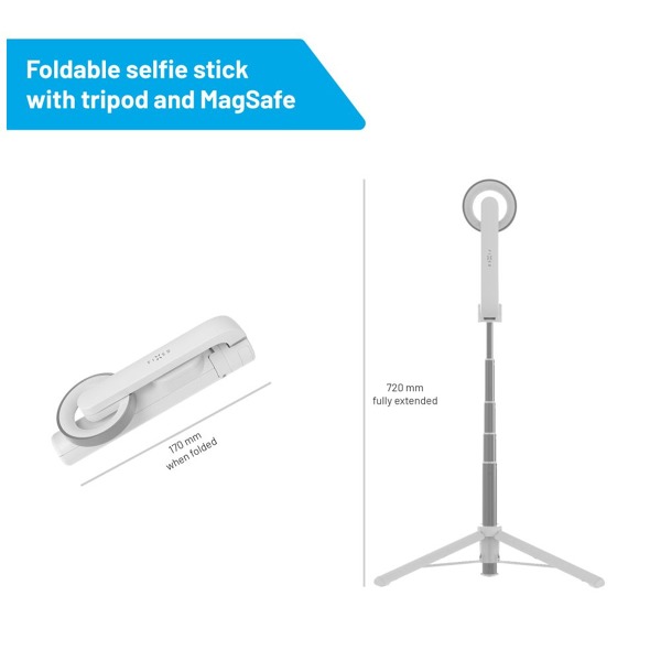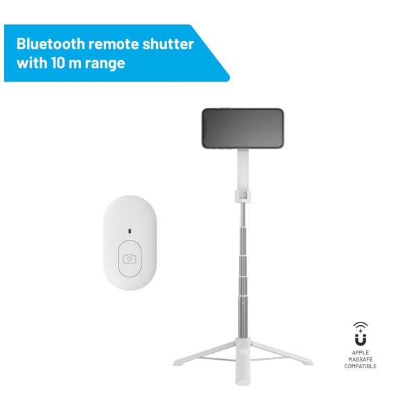 Selfie tyč so statívom FIXED MagSnap s podporou MagSafe a bezdrôtovou spúšťou, biela