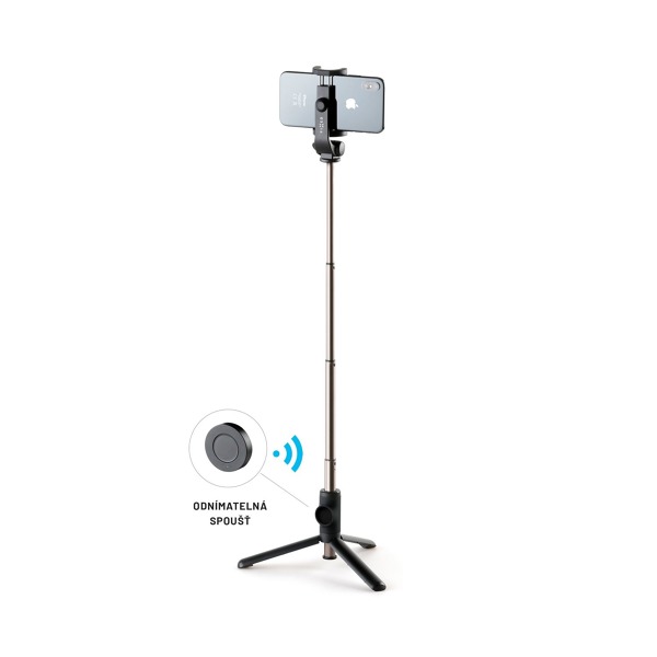 Teleskopická selfie tyč FIXED Snap s funkciou statívu je ideálnym príslušenstvom na natáčanie videa a zhotovovanie tých najlepších fotografií. Telo selfie tyče je vyrobené z odolnej hliníkovej zliatiny a po vysunutí všetkých štyroch častí sa vysunie na dĺžku až 56 cm. Výsuvná svorka hlavy tyče pojme všetky telefóny so šírkou 5 - 9 cm, 360° otočný kĺb umožňuje nastaviť telefón alebo do ideálnej polohy, horizontálne alebo vertikálne. Na natáčanie videa alebo fotografovanie z väčšej vzdialenosti možno selfie tyč vďaka dômyselnej konštrukcii v okamihu premeniť na praktický statív. Spúšť fotoaparátu môžete pohodlne ovládať pomocou ovládacieho tlačidla Bluetooth, ktoré sa dá oddeliť od tela tyče a používať samostatne až do vzdialenosti 10 metrov. Selfie tyč FIXED Snap je ideálna na výlety a dovolenky, v zloženom stave meria len 20 cm a ľahko sa zmestí do tašky alebo batohu.