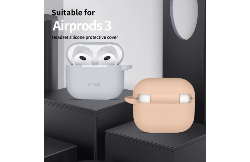 Silikónové puzdro Tech-Protect pre Apple Airpods 3 - Svetlo šedé