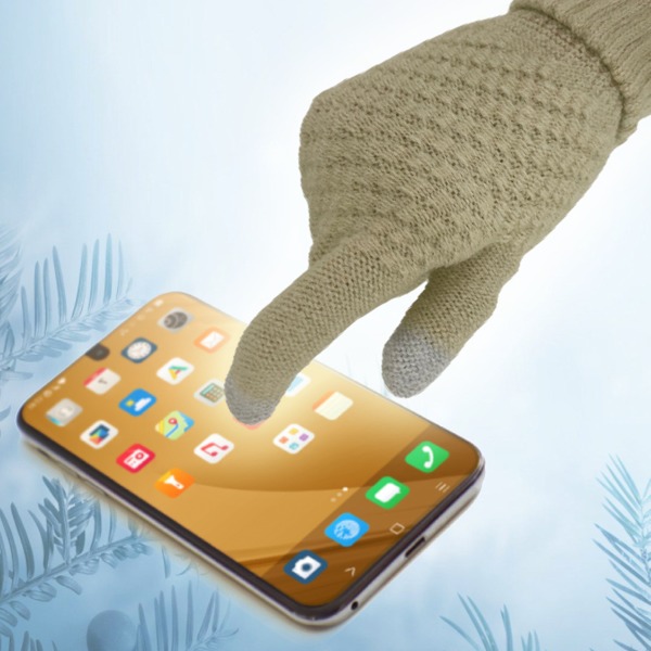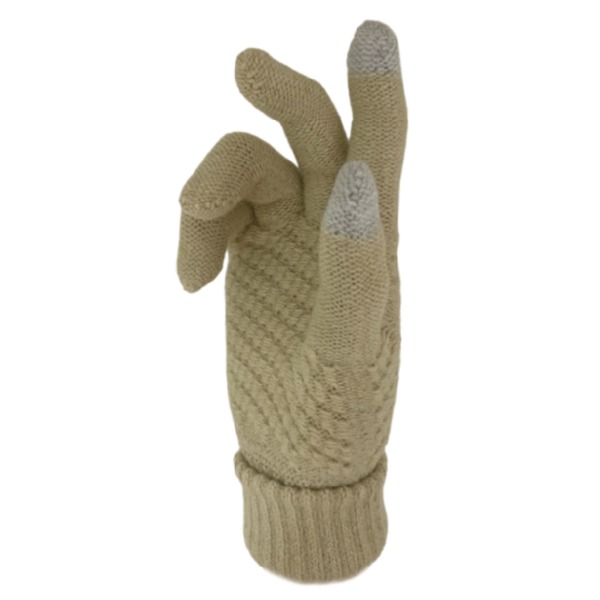 Silné dotykové zimné rukavice s pleteným vzorom - béžová
