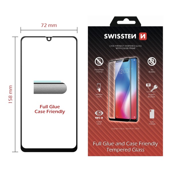 SKLO SWISSTEN FULL GLUE, FAREBNÝ RÁM, VHODNÝ PRE SAMSUNG A025 GALAXY A02s BLACK