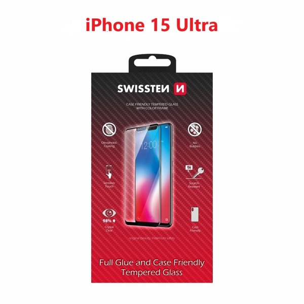 Krytoland pouzdra a kryty na mobil > Kryty a puzdrá na mobilné telefóny > iPhone > iPhone 15 Pro > Tvrdená skla > SKLO SWISSTEN PLNÉ LEPIDLA, FAREBNÝ RÁM, PUZDRO VHODNÉ PRE APPLE IPHONE 15 PRO ČIERNE