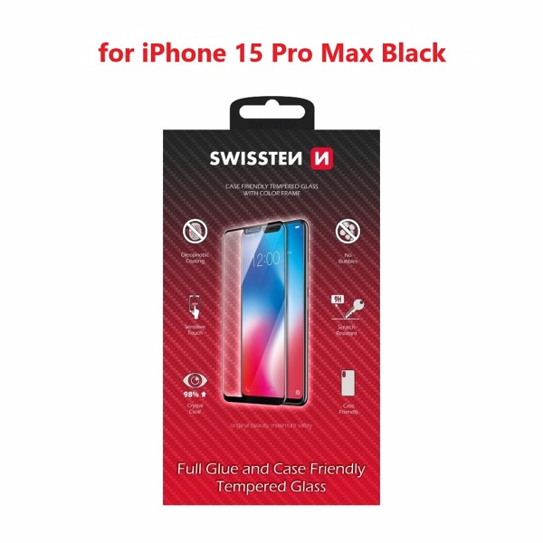 Krytoland pouzdra a kryty na mobil > Kryty a puzdrá na mobilné telefóny > iPhone > iPhone 15 Pro Max > Tvrdená skla > SKLO SWISSTEN PLNÉ LEPIDLA, FAREBNÝ RÁM, PUZDRO VHODNÉ PRE APPLE IPHONE 15 PRO MAX ČIERNE
