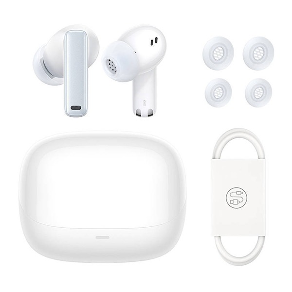 | ABS + PC | cca 49,1 | 5.3 | cca 10 m | 7 h (bez puzdra), 30 h (s nabíjacím puzdrom) | Typ C | 1 h | 35 mAh/0,135 Wh (slúchadlá); 400 mAh/1,48 Wh (nabíjacie puzdro) |