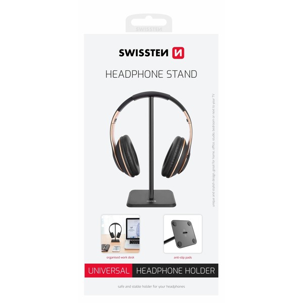 Hľadáte univerzálny stolný stojan na slúchadlá? Stojan na slúchadlá Swissten vyrieši vaše starosti s uskladnením slúchadiel a zároveň ochráni vaše slúchadlá pred poškriabaním.