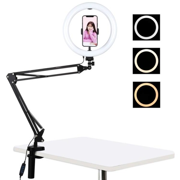 Výšku stojana môžete nastaviť a pre väčšie pohodlie je nastaviteľný aj o 180 a 360 stupňov. Je vyrobený z kvalitného materiálu, vďaka čomu je odolný a má dlhú životnosť. Dvojité závesné pružiny na každom ramene výložníka chránia lampu pred náhlymi pádmi. Okrem toho možno držiak voľne ohýbať, takže svetlo dopadá pod uhlom, ktorý vám najviac vyhovuje. Svorka na základni sa pripevní k pracovnej doske akejkoľvek hrúbky. Vďaka tomu máte voľné ruky na nahrávanie videí.