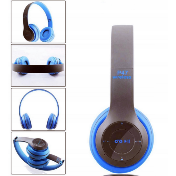 Štýlové bezdrôtové slúchadlá P47 - modro-čierne