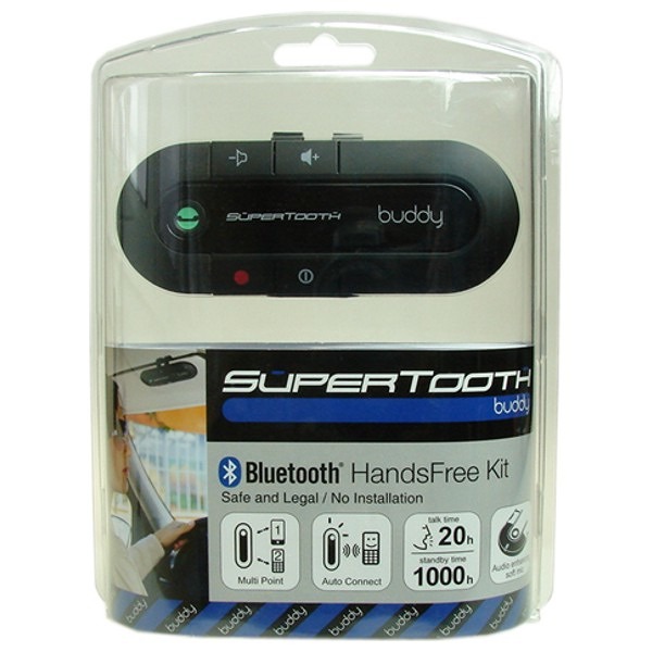 Nové prenosné Bluetooth handsfree Supertooth BUDDY je ideálnym spoločníkom na pohodlné a bezpečné telefonovanie na cestách bez pokút. Buddy zaujme svojimi rozmermi (len 129 x 49 x 14,6 mm), podobne ako ostatné handsfree Supertooth sa umiestňuje na slnečnú clonu v interiéri vozidla - toto riešenie ponúka mnoho výhod. Neprekáža vo výhľade z vozidla a zároveň je blízko hlavy vodiča, čo zaručuje perfektnú kvalitu hovoru. Handsfree podporuje funkciu Multipoint, možno ho pripojiť k dvom telefónom súčasne. Supertooth Buddy podporuje tieto funkcie: DSP na potlačenie okolitého hluku, plne duplexný režim, AutoConnect - automatické pripojenie k telefónu, AutoPairing - funkcia automatického párovania a plná kompatibilita so všetkými telefónmi vybavenými technológiou Bluetooth. To všetko v kompaktnom balení s predĺženou výdržou batérie (20 hodín hovoru) v elegantnom kompaktnom dizajne. Vďaka novému a vylepšenému mikrofónu BUDDY zaručuje čistý zvuk bez ozveny. Tradícia značky Supertooth vám zaručuje pokoj na cestách.