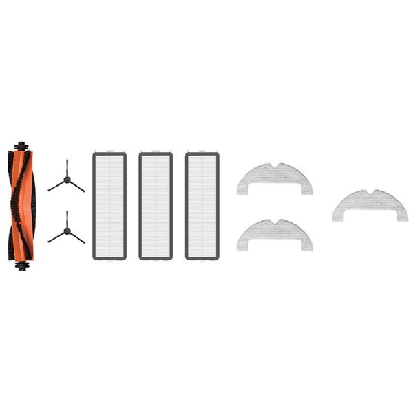 Sada obsahuje hlavnú kefu, 2 bočné kefy, 3 filtre a 3 mopovacie podložky. Kefa v tvare V dôkladne zbiera nečistoty z rôznych typov povrchov a zabraňuje zachytávaniu vlasov, zatiaľ čo bočné kefy účinne odstraňujú prach. Súčasťou sú aj 3 filtre, ktoré oddeľujú prach od vzduchu a zabraňujú sekundárnemu znečisteniu. Mopovacie podložky tiež účinne odstraňujú škvrny a zároveň nepoškodzujú chúlostivé povrchy.