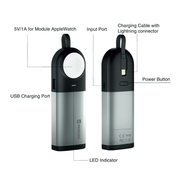 SWISSTEN 2v1 APPLE WATCH MFI POWER BANK 6700 mAh