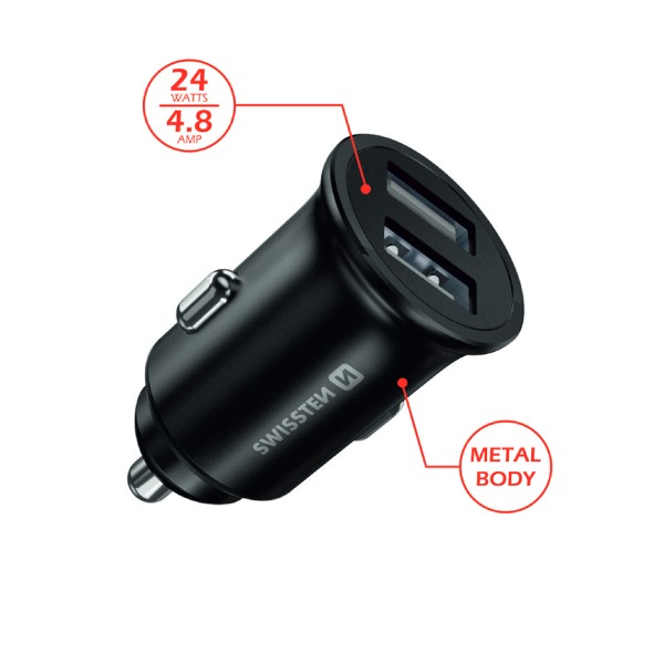 SWISSTEN CL ADAPTÉR 2x USB 4,8A METAL BLACK