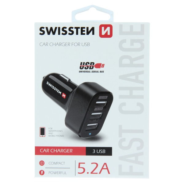 Krytoland pouzdra a kryty na mobil > Príslušenstvo pre automobily > Nabíjačky do auta > SWISSTEN CL ADAPTÉR 3x USB 5,2A POWER
