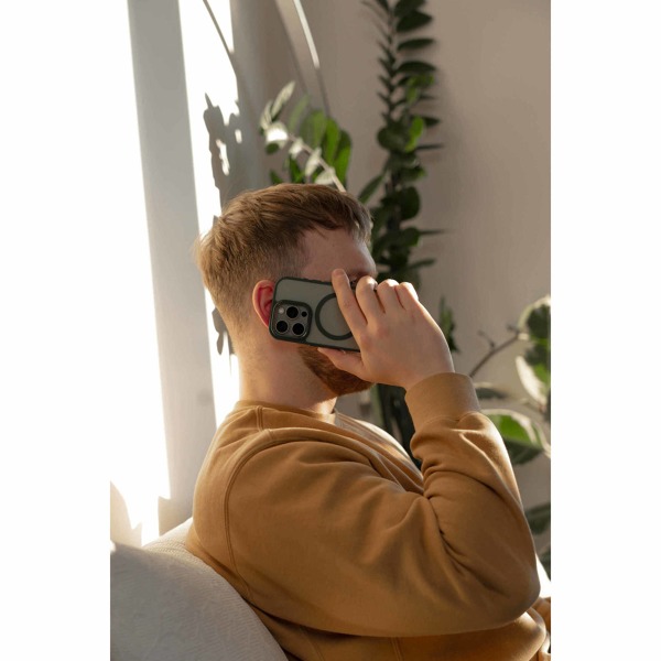 Kryt má zabudovanú funkciu magnetického centrovania MagSafe, ktorá zabezpečí, že sa váš telefón vycentruje a začne sa nabíjať, keď príde do kontaktu s bezdrôtovou nabíjačkou.