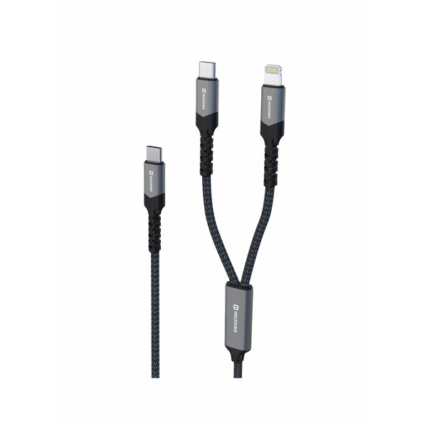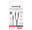 SWISSTEN NABÍJACÍ KÁBEL 2v1 USB-C / USB-C + LIGHTNING 100W 1,5 M ČIERNY
