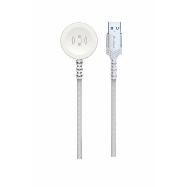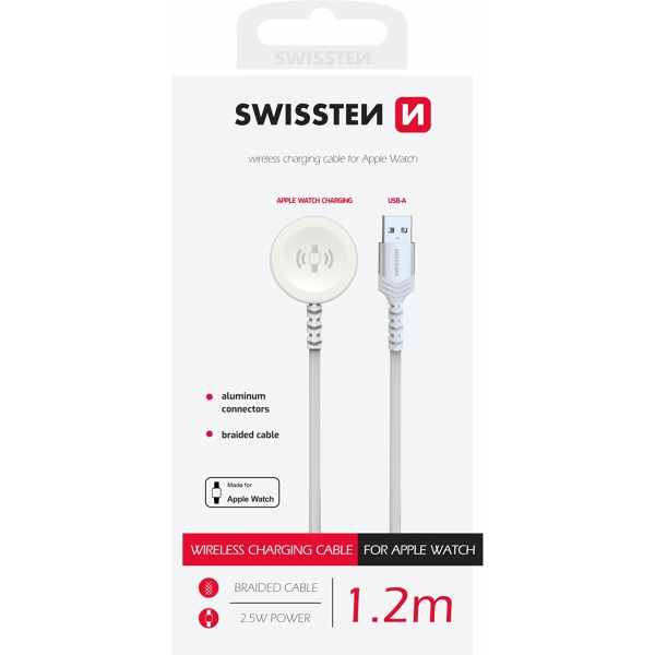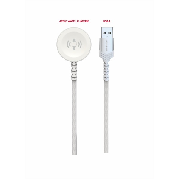 SWISSTEN OPLETENÝ MAGNETICKÝ KÁBEL PRE HODINKY APPLE WATCH METAL, USB-A 1,2 M BIELY