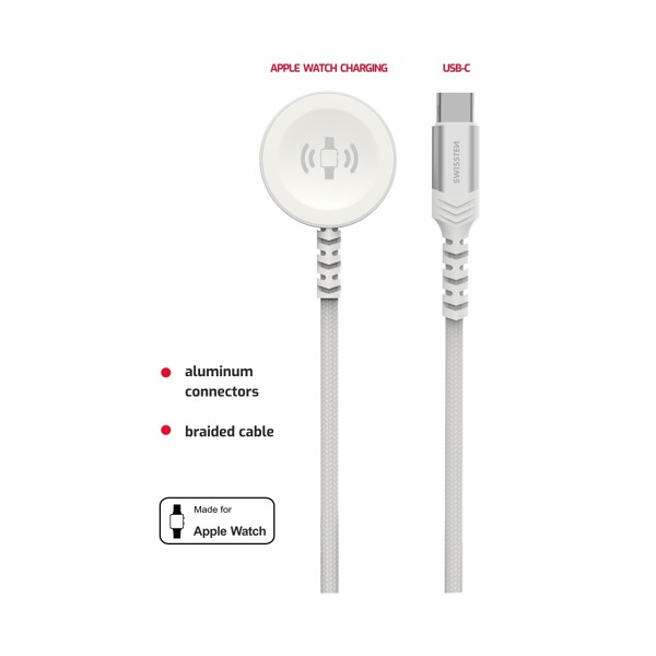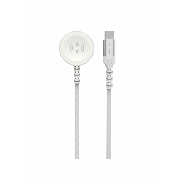 SWISSTEN OPLETENÝ MAGNETICKÝ KÁBEL PRE HODINKY APPLE WATCH METAL, USB-C 1,2 M BIELY
