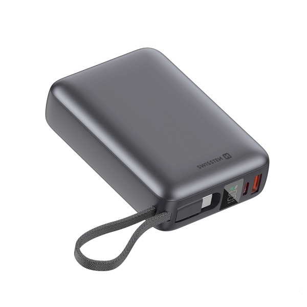 SWISSTEN POWER BANK 20 000 mAh 45W S INTEGROVANÝM KÁBLOM USB-C KOZMICKY STRIEBORNÁ