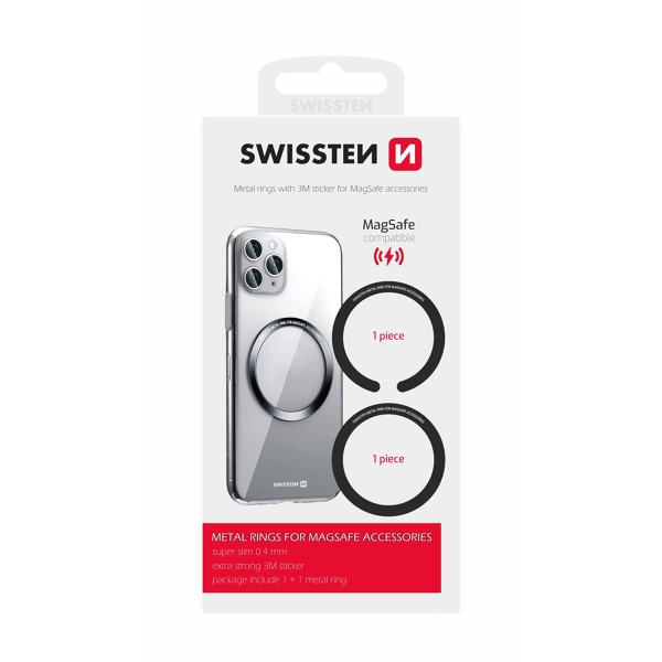 Sada samolepiacich kovových krúžkov pre kompatibilitu s nabíjaním Magsafe. Balené v blistri SWISSTEN
