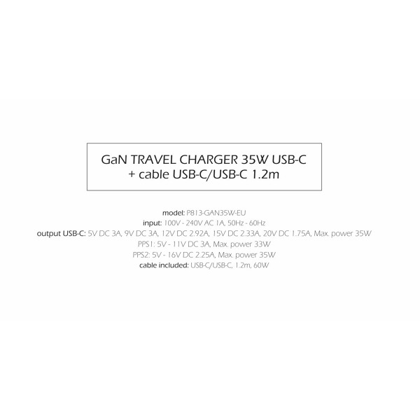 USB-C: 5 V DC 3A, 9 V DC 3A, 12 V DC 2.92A, 15V DC 2,33A, 20V DC 1,75A, Max. výkon: 35W