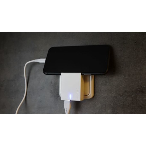 Tvar nabíjačky navrhnutý českým dizajnérom v sebe skrýva niekoľko výhod. Po prvé, vďaka tenkému vyhotoveniu a nižšiemu umiestneniu výstupov USB je vhodná aj na nabíjanie zo zásuviek umiestnených za nábytkom alebo spotrebičmi. Ďalšou výraznou výhodou je drážka na hornej hrane nabíjačky, ktorá slúži ako stojan na umiestnenie smartfónu.