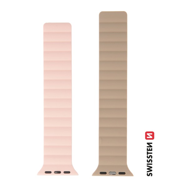 SWISSTEN SILIKÓNOVÝ REMIENOK PRE APPLE WATCH - MAGNETIC 42 / 44 / 45 / 49 mm PINK/CAPPUCCINO