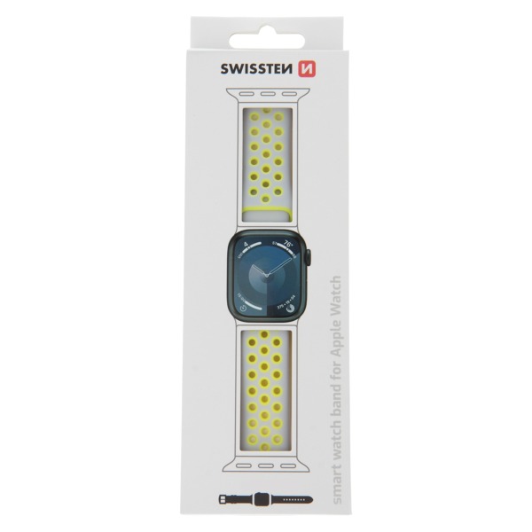 SWISSTEN SILIKÓNOVÝ REMIENOK PRE APPLE WATCH - SPORT 42 / 44 / 45 / 49 mm SILVER/YELLOW