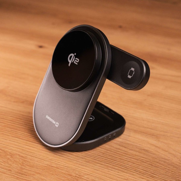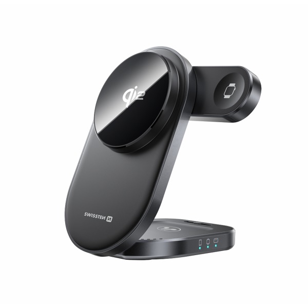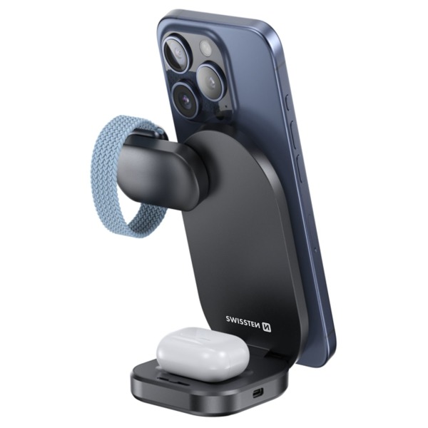 SWISSTEN SKLADACIA BEZDRÔTOVÁ NABÍJAČKA Qi2 MagBase 3v1 BLACK (kompatibilná s MagSafe)