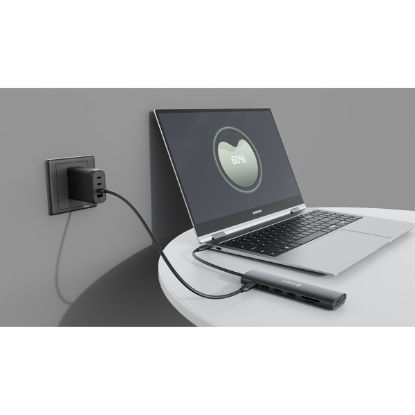Rozbočovač USB-C ponúka až 100 W nabíjací výkon, čo znamená, že vaše zariadenie nebude mať problém s nedostatkom energie.