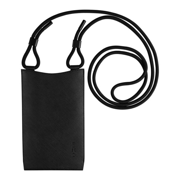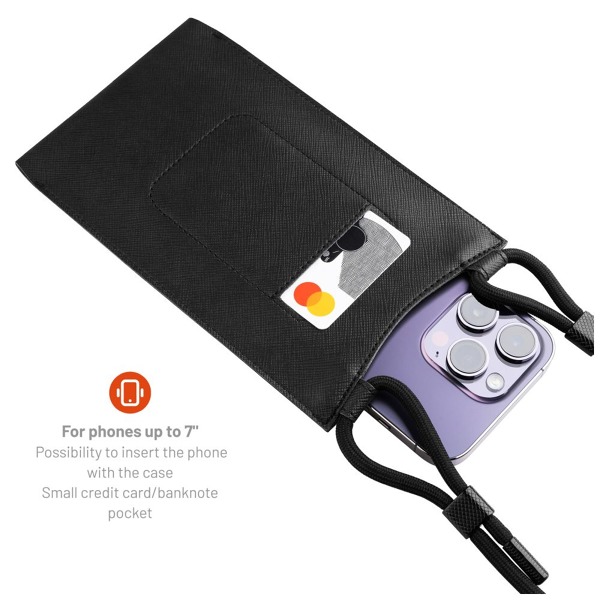 Taška cez rameno s vreckom FIXED Verona s čiernou šnúrkou pre mobilné telefóny do 7", čierna