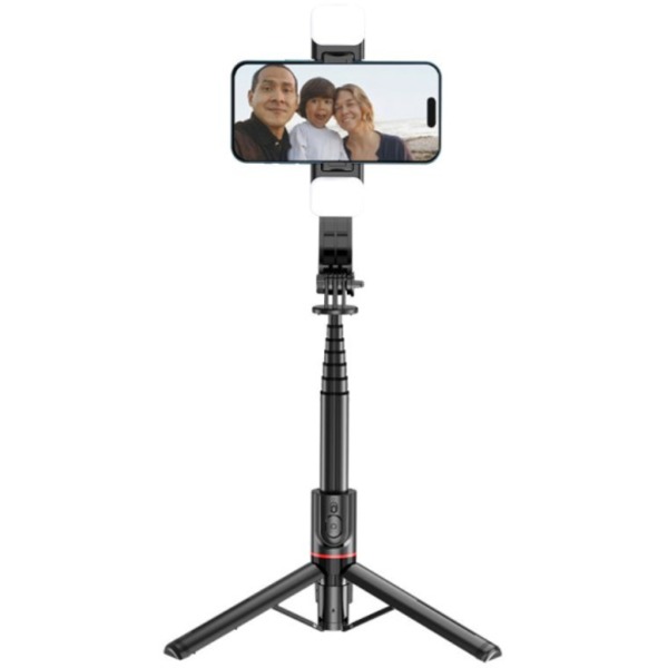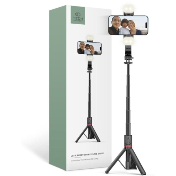 Tech-Protect L05s bezdrôtová selfie tyč so statívom a LED svetlom - čierna