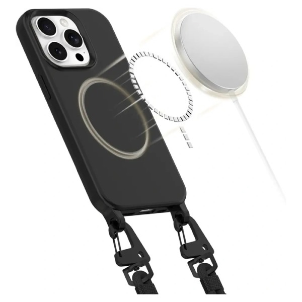 Púzdro je kompatibilné so systémom MagSafe, čo umožňuje rýchle a bezproblémové bezdrôtové nabíjanie. Navyše je vybavené nastaviteľným a odnímateľným remienkom v štýle šnúrky, ktorý poskytuje pohodlné nosenie a bezpečnosť telefónu.