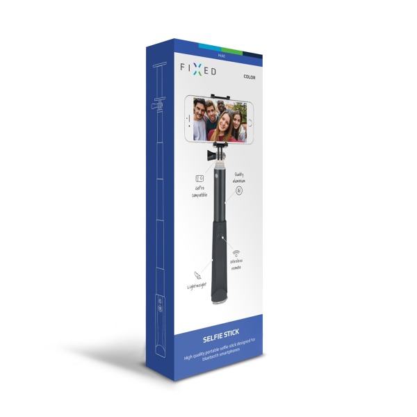 Teleskopická selfie tyč FIXED je ideálnym riešením na bezdrôtové zhotovovanie autoportrétov, fotografií celého tela alebo skupinových záberov. Ide o najnovšiu verziu z roku 2015 pre systém iOS 5.0 alebo vyšší a Android 4.2.2 alebo vyšší. Teleskopické rameno možno vysunúť až do dĺžky 97 cm, po zasunutí meria 23 cm a je vyrobené z nepoddajnej hliníkovej zliatiny. Selfie tyč FIXED využíva na rýchle a jednoduché používanie najnovšiu verziu Bluetooth 3.0. Má gumovú protišmykovú rukoväť s tlačidlom na fotografovanie. Veľkou výhodou je aj zabudovaná 150 mAh nabíjateľná batéria, ktorá v pohotovostnom režime vydrží až 300 hodín. Pohodlné fotografovanie zabezpečuje nízka hmotnosť, selfie tyč FIXED váži len 161 g a má maximálnu nosnosť 500 g. Robte skvelé fotografie so selfie tyčou FIXED a zdieľajte ich so svojimi priateľmi.