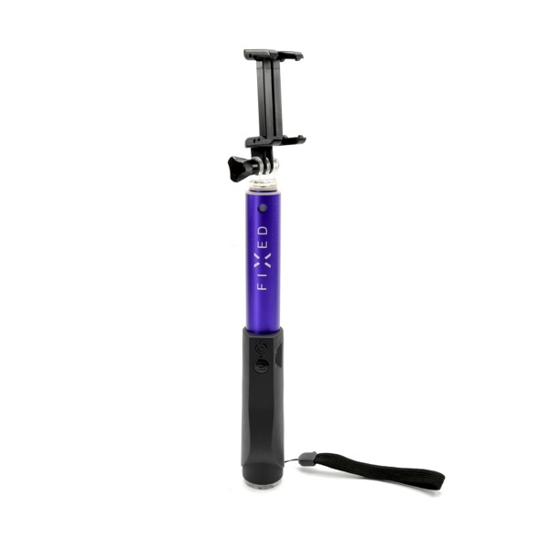 Teleskopická selfie tyč FIXED z luxusného hliníka s BT spúšťou, modrá