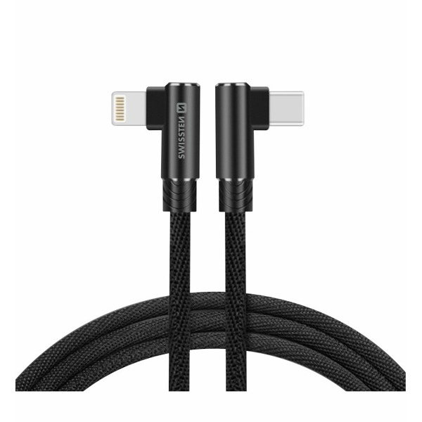 TEXTILNÝ DÁTOVÝ KÁBEL SWISSTEN ARCADE USB-C / LIGHTNING 1,2 M ČIERNY