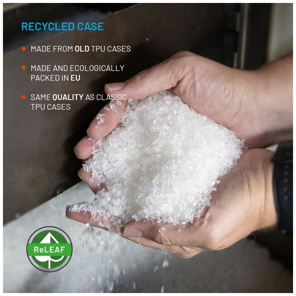 - špeciálne prísady v recyklovanom materiáli zaisťujú rovnakú kvalitu puzdra ako pri úplne novom materiáli TPU