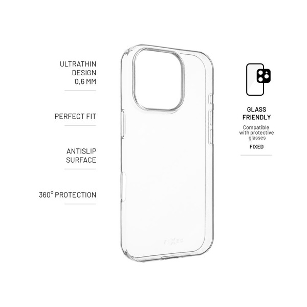 Ultratenký gélový kryt TPU FIXED Story Slim pre Apple iPhone 16 Pro, 0,6 mm, číry
