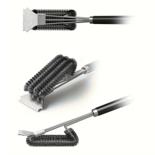 Udržujte svoj gril vždy dokonale čistý s profesionálnou kefou na gril 3v1, ktorá spája špičkový výkon, odolnosť a praktickosť. Tento robustný nástroj je vyrobený z kvalitnej nehrdzavejúcej ocele a je vybavený trojitou špirálovou kefou, ktorá rýchlo odstráni všetky nečistoty, pripálené zvyšky a mastnotu zo všetkých typov grilovacích roštov. Husté špirály zabezpečujú maximálny kontakt s povrchom, čím šetria čas a námahu pri čistení.