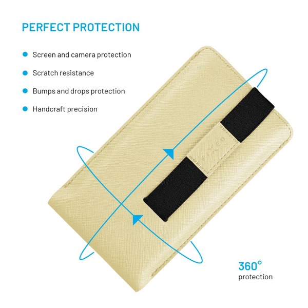 Univerzálne puzdro FIXED Lucca poskytuje vášmu telefónu bezpečnosť v štýlovom dizajne. Puzdro je ručne vyrobené v našej vlastnej prostějovskej dielni z kvalitnej syntetickej kože, ktorá chráni telefóny s uhlopriečkou do 6,3". Na zabezpečenie telefónu je puzdro doplnené praktickým popruhom, ktorý zabraňuje náhodnému pádu, a to aj pri nosení v kabelke alebo batohu. Zároveň uľahčuje jeho vysúvanie, stačí potiahnuť za remienok a telefón sa z puzdra vysunie. Po opätovnom vložení telefónu sa remienok zasunie. Elegantný vzhľad a odolnosť puzdru dodáva kvalitná syntetická koža so vzorom Saffiano, ktorý sa vyznačuje diagonálnym šrafovaním. Vďaka tomu je materiál odolný voči poškriabaniu alebo bežnému opotrebovaniu, a pritom príjemný na dotyk. Puzdro s elegantným dizajnom v modernej farbe povyšuje ochranu telefónu na štýlový doplnok.