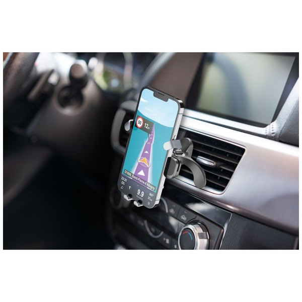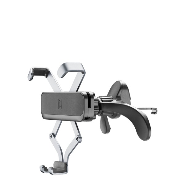 Univerzálny držiak Cellularline Slide Fit určený do mriežky ventilácie sa postará o upevnenie vášho telefónu počas jazdy. Funguje na jednoduchom princípe, keď vložíte telefón do klieští, jeho vlastná hmotnosť spôsobí, že sa kliešte samy upnú. Ide o rýchle a účinné upevnenie jednou rukou. Rovnako ľahko sa dá telefón vybrať. Spodná časť klieští držiaka ponecháva voľný prístup k nabíjaciemu portu telefónu. Držiak je vyrobený v elegantnom striebornom dizajne a bude skvelým doplnkom palubnej dosky vášho auta. Na zadnej strane má háčik s upevnením na mriežku. Vďaka jedinečnému systému Slide Fit sa prispôsobí klasickým aj kruhovým vetracím otvorom a stabilne drží aj pri najmenších otrasoch spôsobených jazdou. V zloženom stave má držiak minimálne rozmery a neprekáža v aute.