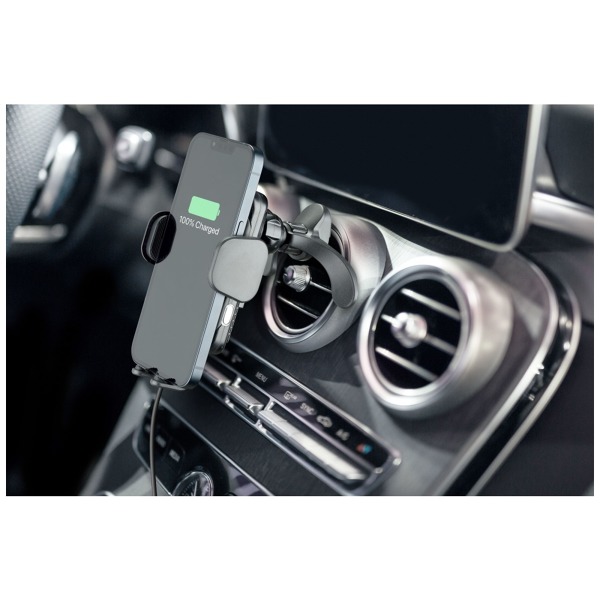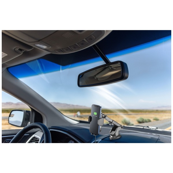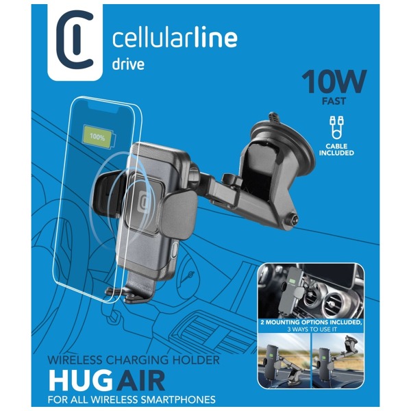 Cellularline Hug Air je moderný držiak do auta s bezdrôtovým nabíjaním Qi, ktorý rieši problém s držaním a nabíjaním telefónu počas jazdy. Je určený na upevnenie na palubnú dosku alebo čelné sklo automobilu pomocou prísavnej základne a vďaka dodatočnému nadstavcu možno držiak bezpečne pripevniť aj na mriežku ventilácie. Držiak dokáže nabíjať výkonom až 10 W a ukrýva nabíjaciu cievku s technológiou Wideactive™ 1 s ochranou proti prehriatiu. Keď je telefón pripojený k držiaku, integrovaný snímač spôsobí, že svorky držiaka sa automaticky zovrú a bezpečne zaistia telefón. Ak chcete telefón vybrať, jednoducho stlačte tlačidlo na boku držiaka a otvorte kliešte. Kĺb v hlave držiaka a nastaviteľná dĺžka ramena slúžia na dokonalé prispôsobenie telefónu uhlu pohľadu. Telefón tak bude vždy pekne na očiach na bezpečnú navigáciu alebo vybavovanie hovorov.