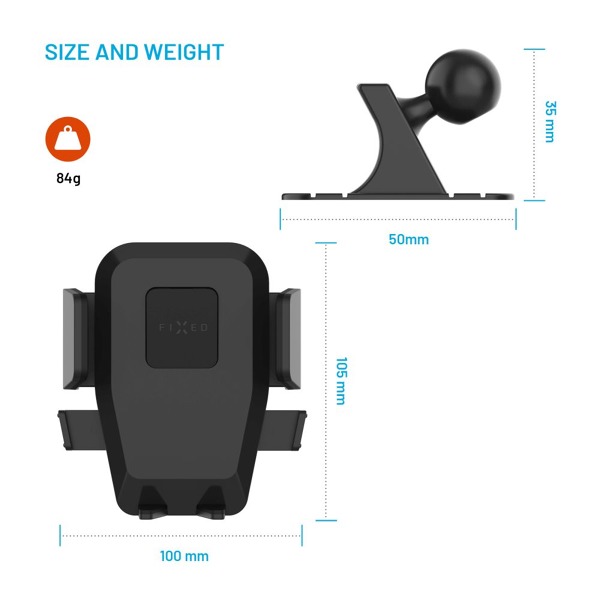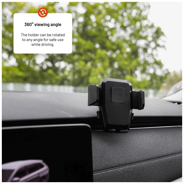 Univerzálny držiak do auta FIXED Iconiq Dash s rýchloupínacím systémom Push and grip ponúka bezpečné a jednoduché upevnenie telefónu jednou rukou. Držiak je kompletne vyvinutý v Českej republike a ponúka tichý a hladký mechanizmus v kombinácii s minimalistickým funkčným dizajnom. Stačí telefón zľahka pritlačiť k povrchu držiaka a bočné svorky sa automaticky prispôsobia veľkosti telefónu až do šírky 8,3 cm. Jediným stlačením sa telefón rovnako rýchlo uvoľní. Stabilitu pripevneného telefónu zospodu zaisťujú skosené podpery, ktoré nebránia prístupu k nabíjaciemu konektoru. Telo držiaka je kombináciou tvrdeného plastu a ochranných silikónových prvkov, ktoré tvoria jeden celok. Základňa držiaka sa pripevní na ľubovoľné miesto v aute pomocou pevnej 3M pásky a pružnosť základne zaisťuje stabilné uchytenie aj na zakrivených povrchoch. Otočný kĺb možno použiť na nastavenie ideálneho uhla pohľadu, zatiaľ čo odnímateľné úchyty na zadnej strane držiaka uľahčujú organizáciu káblov. S držiakom FIXED Iconiq Dash si užijete každú jazdu bez obáv.