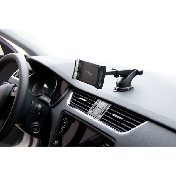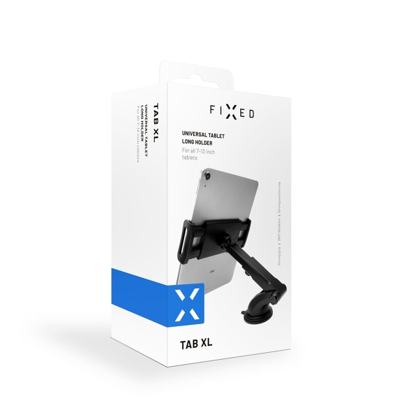 Univerzálny držiak FIXED Tab XL je ideálnou voľbou na upevnenie tabletu v aute. Vďaka dlhému teleskopickému ramenu je vhodný najmä pre vozidlá MPV, dodávky a všetky nákladné vozidlá, kde sú čelné sklo a palubná doska vo väčšej vzdialenosti od vodiča. Priľnavá základňa ľahko odolá všetkým nárazom spôsobeným jazdou a vydrží aj opakované pripevnenie. Výsuvné svorky držiaka sú vybavené ochranným polstrovaním a bezpečne udržia akýkoľvek tablet s uhlopriečkou 7 - 13", svorky majú rozpätie 12,5 - 20,5 cm. Vďaka teleskopickému ramenu s výsuvom až 17 cm a 360° otočnému kĺbu si môžete tablet nastaviť presne podľa svojich predstáv tak, aby bol pekne na očiach. S držiakom FIXED Tab XL môžete pohodlne a bezpečne používať tablet napríklad na navigáciu alebo prehrávanie hudby počas jazdy.